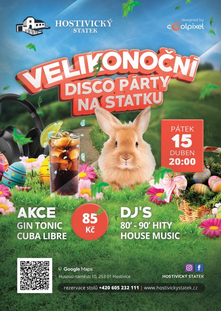 15.4.2022 Velikonoční Disco Party na statkuNapsal cluster1 / 6 dubna, 2022 Zveme Vás na Velikonoční Disco Party