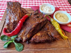 Žebra marinovaná s křenem a hořčicí s domácím chlebíčkem a půl litrem pivka dle výběru pro 1 osobu 450 Kč (pro 2 osoby za 950 Kč)